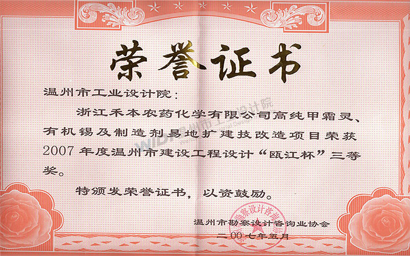 浙江禾本農(nóng)藥化學有限公司高純甲霜靈、有機錫及制劑異地擴建技改項目 甌江杯三等獎