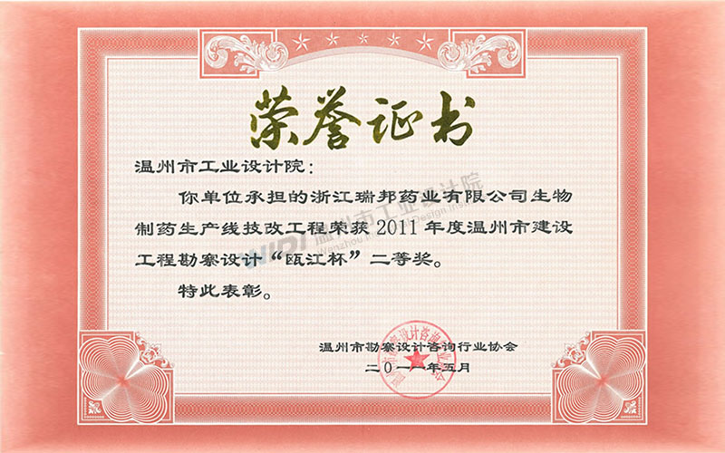 浙江瑞邦藥業(yè)有限公司生物制藥生產(chǎn)線技改工程設計 甌江杯二等獎
