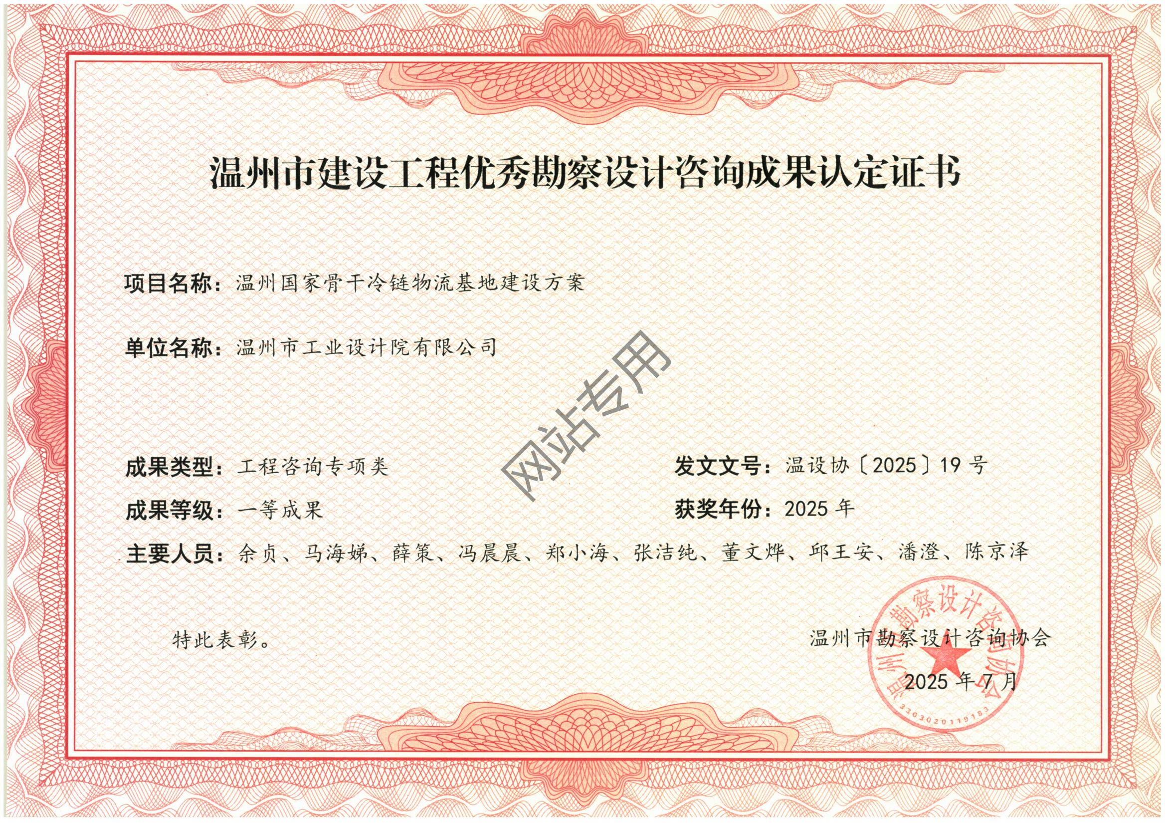 溫州國家骨干冷鏈物流基地建設方案 2025年度“甌江杯”工程咨詢專項類一等獎