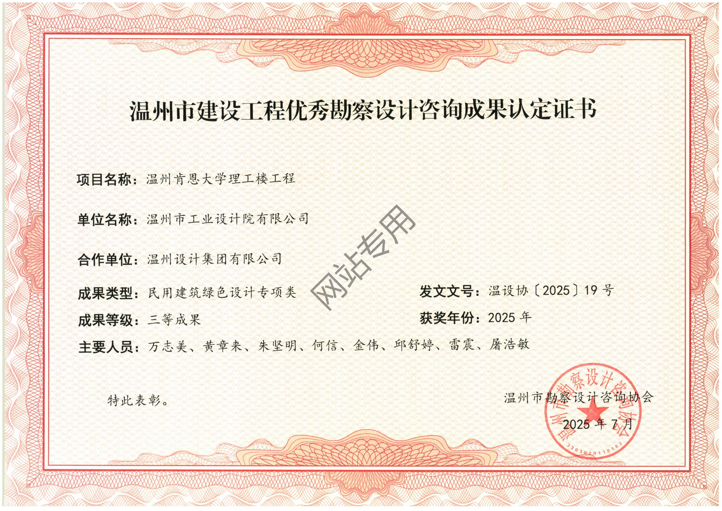 溫州肯恩大學理工樓工程 2025年度“甌江杯”民用建筑綠色設計專項類三等