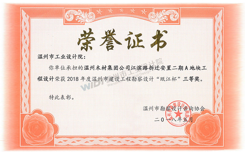 溫州木材集團(tuán)公司江濱路拆遷安置二期A地塊工程設(shè)計(jì) 甌江杯三等獎(jiǎng)