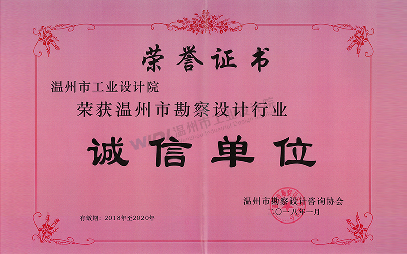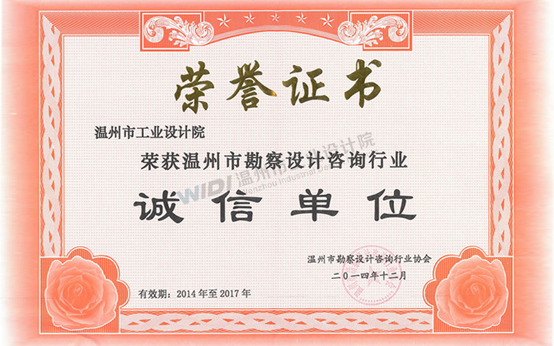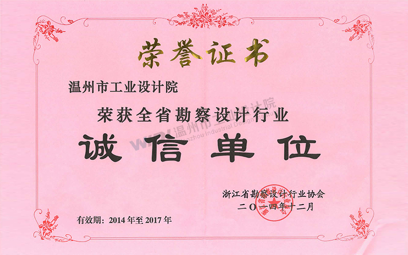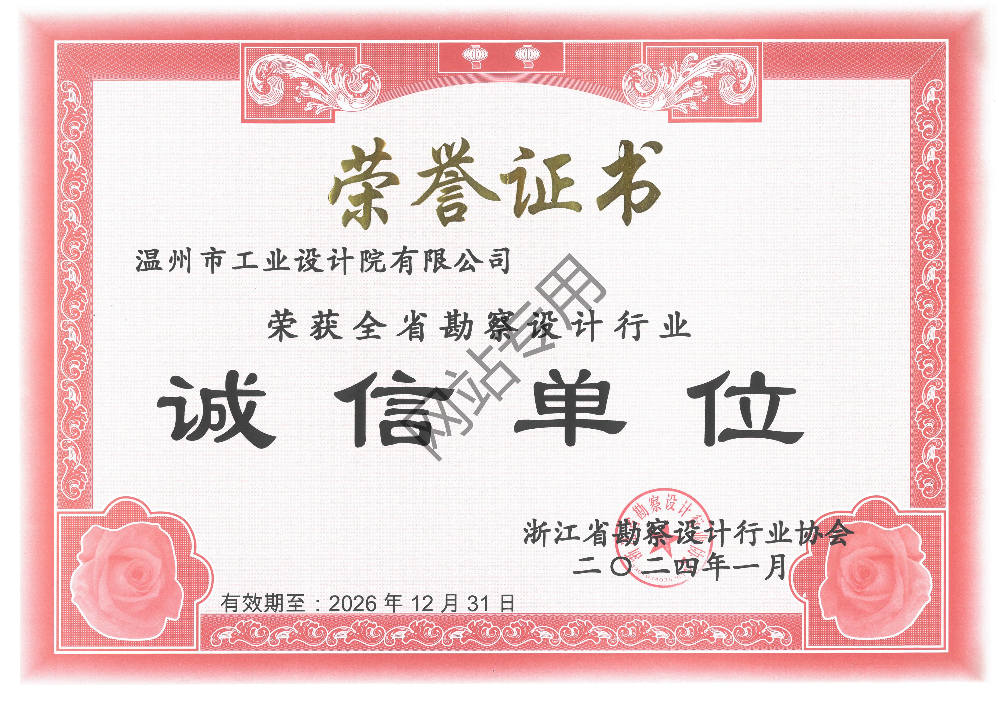 溫州市勘察設計行業(yè)誠信單位證書2024-2026