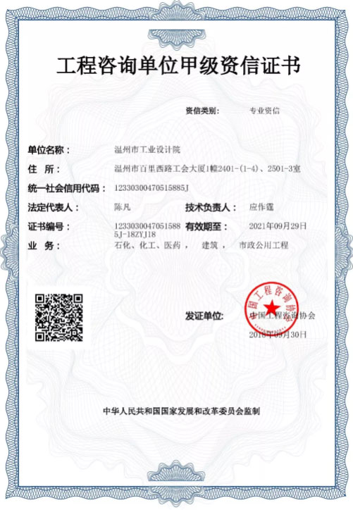 近日,市工业设计院顺利领取首批工程咨询单位甲级资信证书(化工石化医药,建筑,市政公用工程),成为温州地区独家甲级资信企业。...